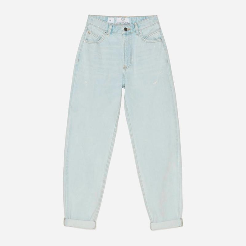 Улюблені мною джинси іспанської фірми Bershka. В ідеальному стані, блідо-блакитного кольору, фасону Моm. Продаю лише тому, що більше не влажу в них😀🫣 Якість- відмінна, 💯 коттон. Заміри: ширина в поясі- 35 см., довжина- 101 см., кроковий шов- 71 см.
