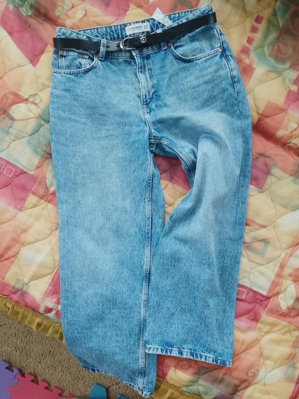 Джинсы как новые, мне не подходят размер как похудела. Надевались пару раз. ПОТ 40; ПОБ 56; ширина штанины 29 идут к низу широкие, длина по надру шву 91; по внутр 66. Плотний каттон.