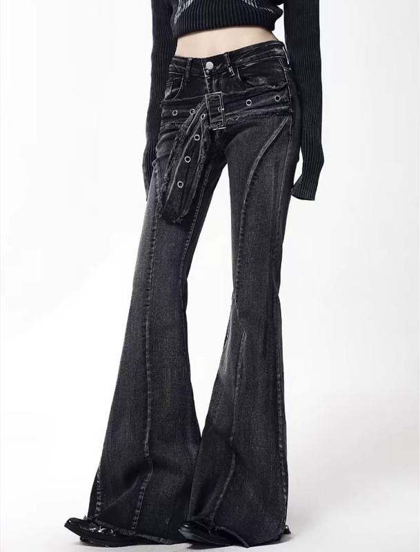 Джинси кльош декоративним текстильним поясом y2k goth