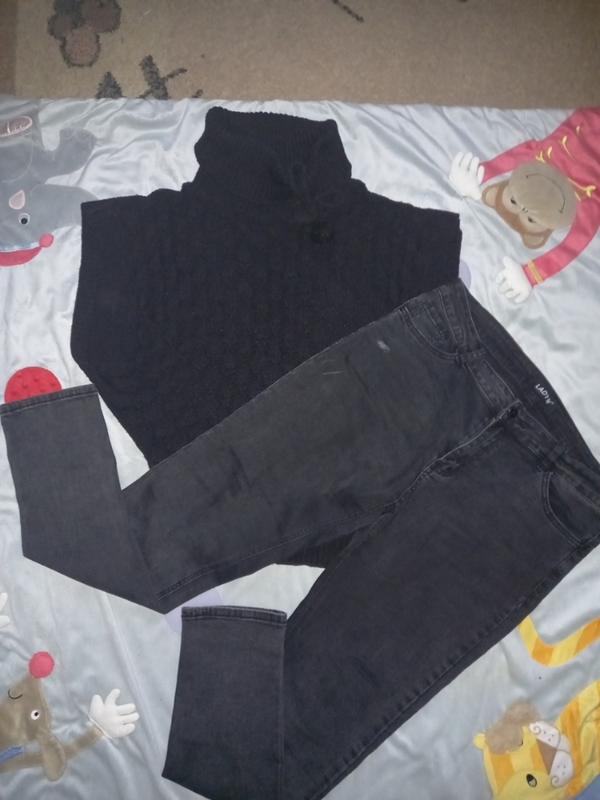 Вязаная жилетка и джинсы ( темно серого цвета) без дефектов. Зіміри ⤵️ Жилетка : Длина - 60 см Спина - 57 см НОГ- 54 см Джинси : Длина - 100 см Посадка - 39 см НОБ - 49 см
