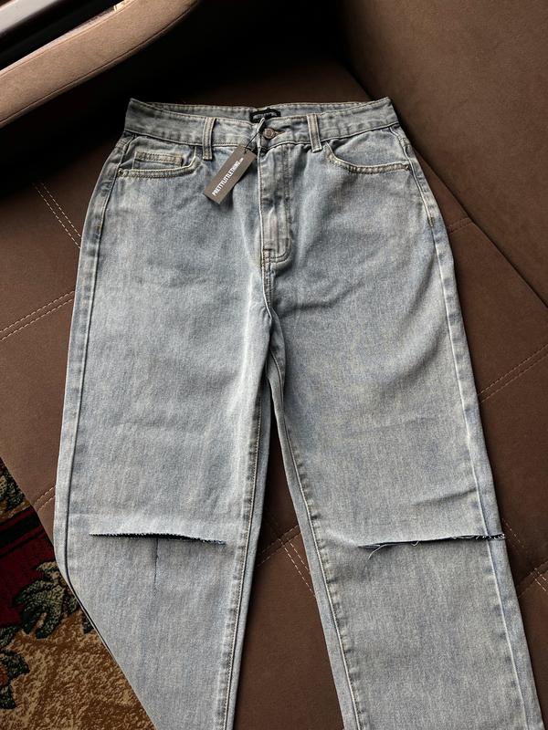 Деталі📌 Джинси цупкі, прорізи заводські, на високу дівчинку; Розмір📌 M-L; Стан📌 Нові з біркою; Заміри📌 ПОТ - 40; ПОБ - 54; Довжина -111; Посадка -33 (перід), 37 (позаду) ‼️Фото на тілі не роблю‼️ 💌За детальною інформацією звертайтесь а дк💌