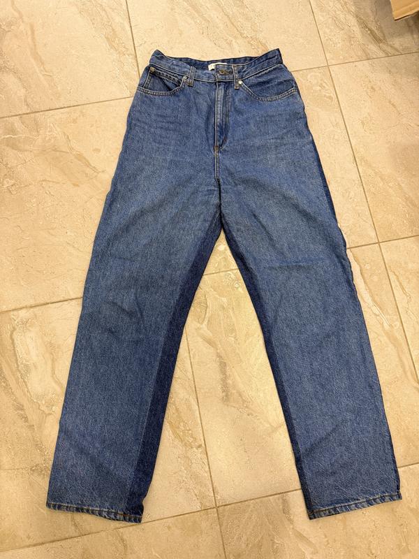 Двокольорові джинси бренду Sandro з високою посадкою, розмір 36/S, довжина виробу: 75 см, талія 65-70см