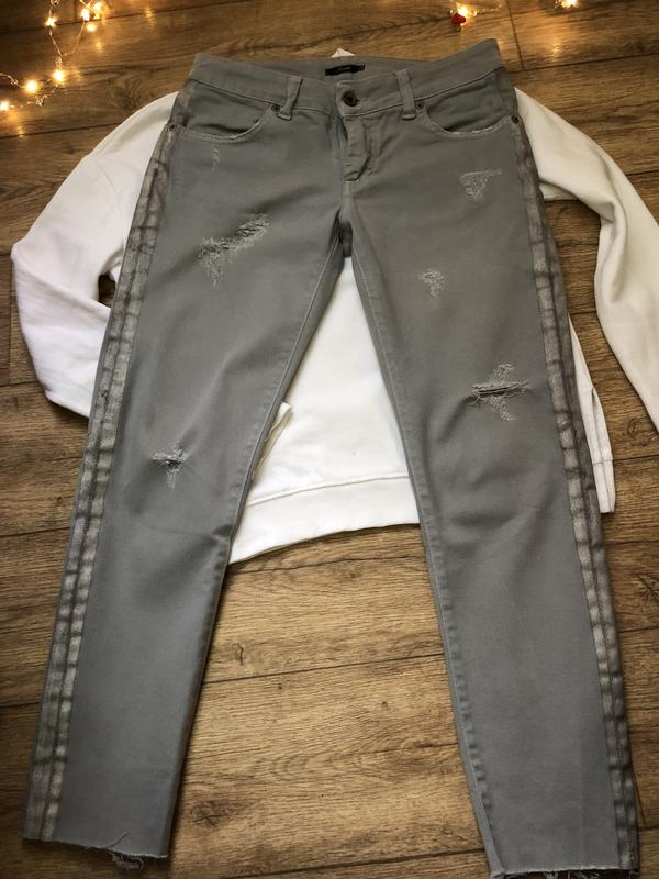 Крутые итальянские джинсы,с лампасами серебристого напыления,укорочённые.Мега крутые😍