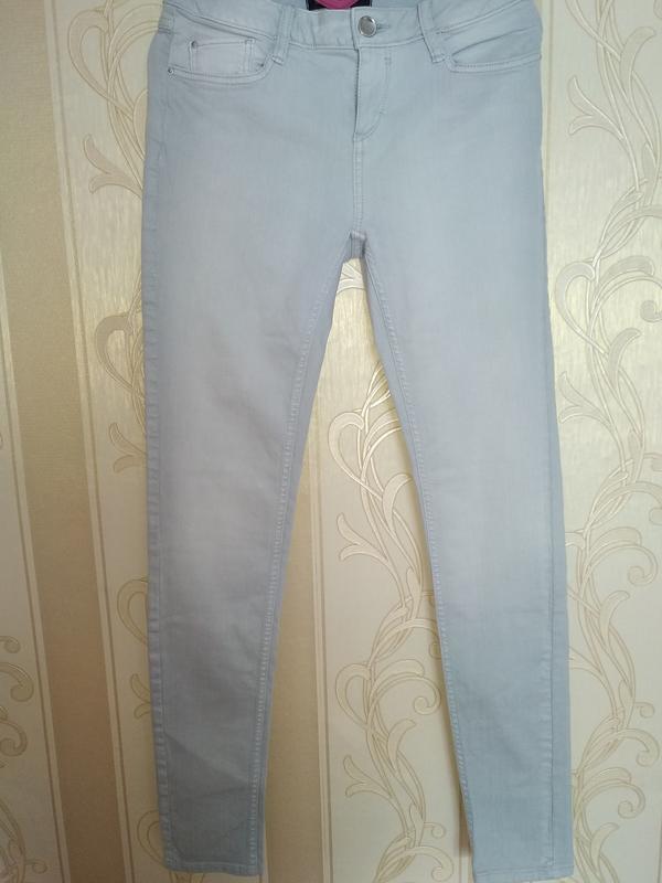 Предлагаю вашему вниманию шикарные котоновые базовые джинсы скини серо- голубого цвета. Цвет однородный, свежий и спокойный по ощущениям. Ткань имеет вертикальную мелкую фактурную полосочку, которая визуально стройными. Джинсы достаточно плотные и тянутся. За счёт этого хорошо садятся по фигуре. Сами джинсы в идеальном состоянии, скорее всего даже новые, бумажной бирки нет. Замеры: ПОТ 40-43 см , ПОБ 48-55 см, Посадка 22 см и 35 см, Длина по внешнему шву 106 см, по внутреннему 80 см. Пошив качественный , никаких украшений на карманах. Просто и стильно. Эх Удачных Вам покупок!