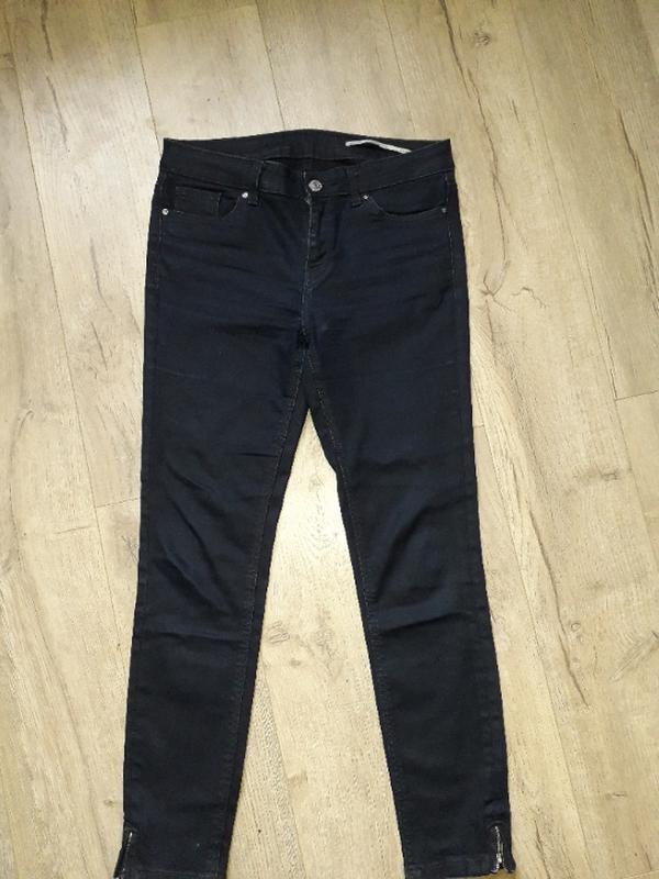 Скинни с декоративными замочками внизу. Длинна-90, ПОТ-37, посадка спереди-24, сзади-33, ширина штанины внизу-13 см. Ткань немного тянется.