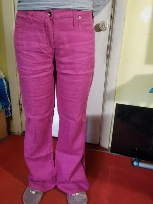 Напівобхват талії 41,по боковому шву 107,по веутреннему 85,штанина низ 30,напівобхват стегон 56,посадка перед 21,зростання моделі 175 см..