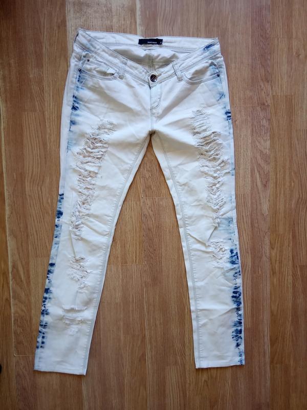 Стильні, брендові, обтягуючі джинси"рванки" Бренд Tally Weijl Під "рванками" ніжне кремове мереживо Колір блакитний З двома внутрішніми кишенями з боків; З двома кишенями ззаду; Склад: 99% котон 1% еластан Заміри: Довжина виробу 100см Довжина внутрішнього кроку 76см ПІТ 45-47см (тягнеться) ПОБІДИ 50-52см Висота посадки спереду 19см Висота посадки ззаду 32см Окружність низу штанини 31см