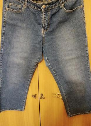 Отличные джинсовые капри, очень удобные. Размер указан 16, ориентируйтесь по замерам: длина 79 см, шаговая 55 см, пояс 46 бедра 50. Тянутся.