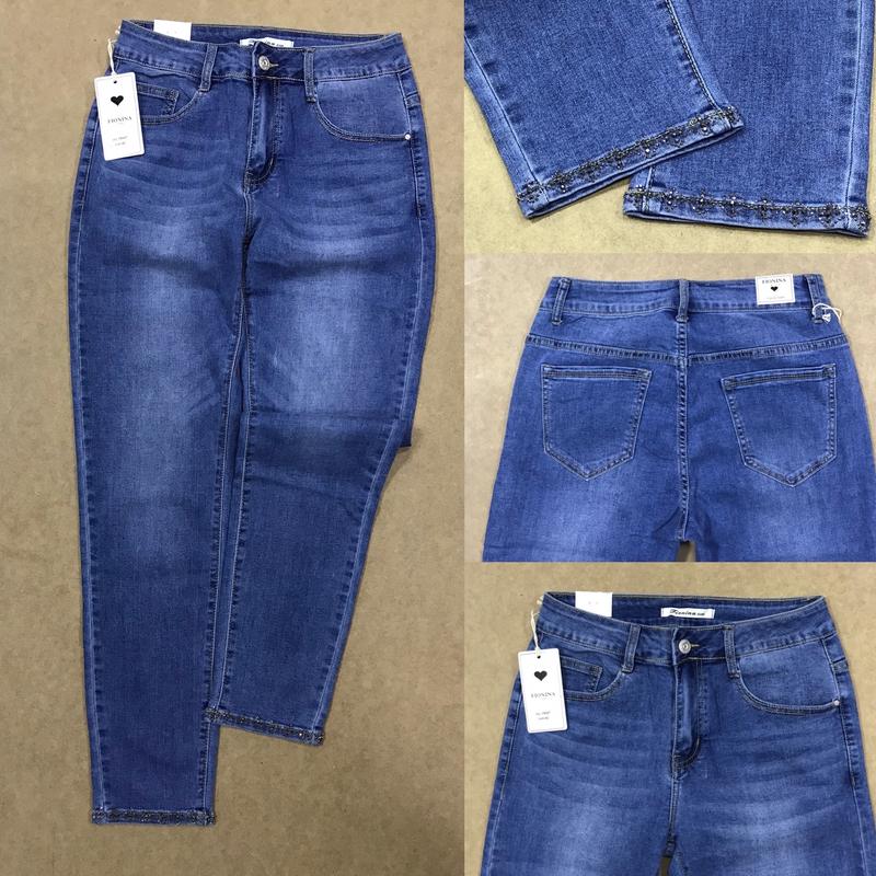 Джинси Fionina камінці 42: пояс 70-80, бедра 92-110см 44: пояс 74-84, бедра 94-114см 46: пояс 76-88, бедра 96-116см 48: пояс 78-94, бедра 100-120см 50: пояс 82-100, бедра 106-126см 52: пояс 88-104, бедра 108-134см Довжина 99см