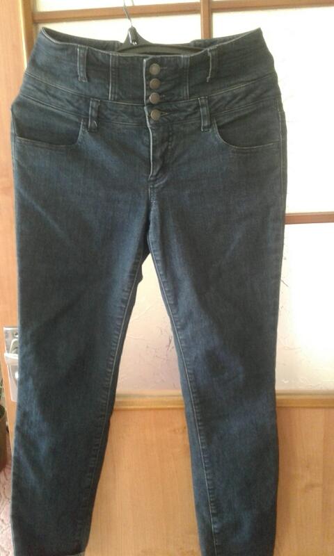 джинсы с высокой посадкой. Сзади еластична резинка.