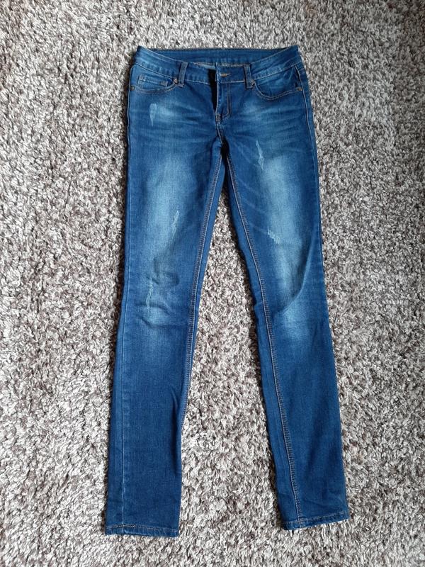Синие потертые джинсы, хорошо садятся и смотрятся отлично.
