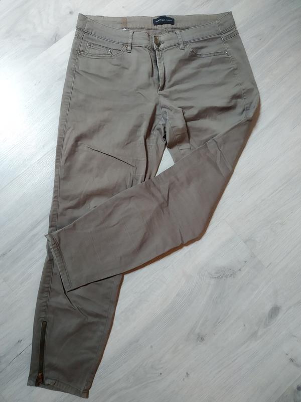 ззади на правій стороні під попою невелике(плямочка) вицвітання тканини Довжина 86см./крок 66см., ширина стегон 51см., талії 38см., посадка спереду 20см. ззаду 32см.