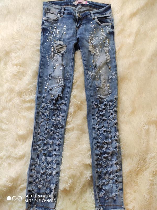 Крутые джинсы с рваностями и потертостями!Размер 27