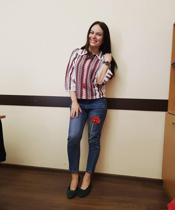 джинсы с маком аппликация на ноге очень стильные размер 42-44 состояние новых, 2 раза надеты