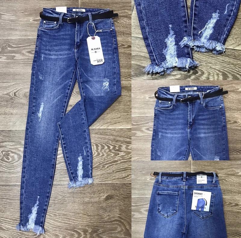 Шикарні молодіжні джинси М.Sara з ефектом Push up!!! Дуже гарно підкреслюють фігуру!!! В комплекті поясок, поцарапані, низ обрізаний та також поцарапаний!! 25: пояс 58-70, бедра 74-88см 26: пояс 60-72, бедра 76-90см 27: пояс 62-76,бедра 78-94см 28: пояс 64-80, бедра 80-98см 29: пояс 66-84 бедра 82-98см 30: пояс 68-86, бедра 84-100см 31: пояс 70-90, бедра 88-112см Довжина 91см.