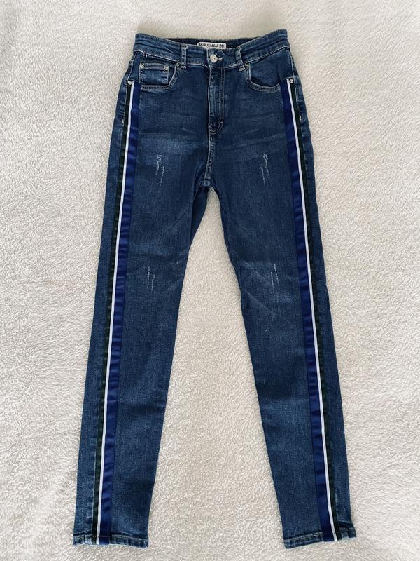 В идеальном состоянии, без дефектов. Высокая посадка, есть карманы спереди и сзади.