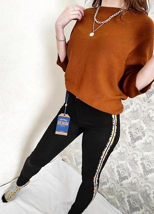 Чорні приталені джинси з леопардовими вставками по боках 🥰 Розмір на бірці 32. На фото модель з розміром s. Нові, з біркою.