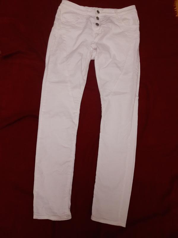 Белые джинсы размера S. Бренд Please. Коттон 98 %, эластан 2%. Пояс 39 см, ПОБ 52 см, длина 101 см, ширина 14,5см.