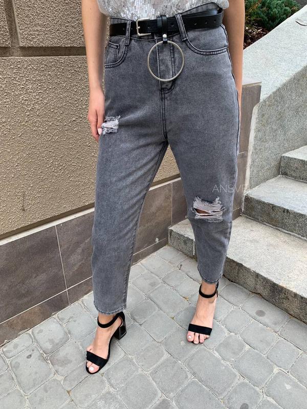 Рваные джинсы МОМ😍 Мод: 194 Размер: s,m,l Цвет: чёрный, серый Ткань: джинс Без пояса в комплекте Цена 650 грн