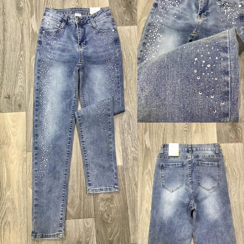Джинси АВА з камінцями В тканині стрейч-котон XS: пояс 56-66, бедра 70-82см S: пояс 58- 68, бедра 72-84см М: пояс 60-72, бедра 74-90см L: пояс 64-78, бедра 80-100см XL: пояс 70-82, бедра 82-102см Довжина 103см
