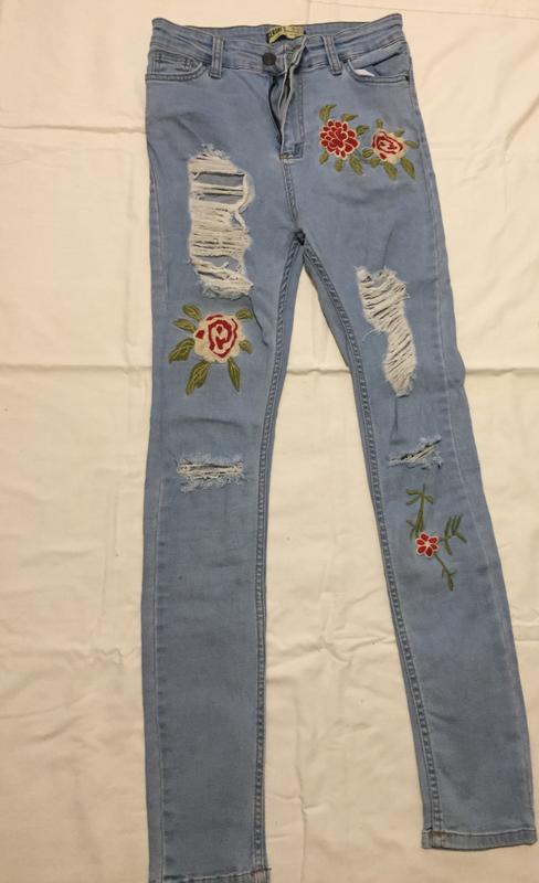Рвані джинси з вишитими квітами, світлі Осінь гарно сидять на тілі Купувала в Туреччині 98% бавовна, 2% еластан Можливий торг