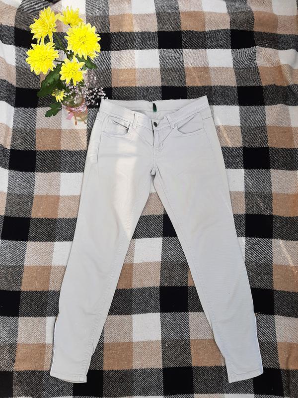 👖Бренд "Benetton" Классные Светло серые/темно белые коттоновые зауженные штаны/джинсы низкая посадка/набедренные/бедровки по бокам внизу по ножкам молнии внизу Коттон/хлопок + стрейч. Тянутся. ❓Причина продажи: мне они уже малы (фото для продажи - видно, что уже впритык). 👖Замеры: подойдут на размер XS-S • длина 90 см • ширина пояса 38 см • ширина штанины по бедру 26,5 см • высота молнии по низу 17 см • ширина штанины внизу 11,5 см • высота посадки спереди (от верха штанов до пахового шва) = 18 см • высота посадки сзади (от верха штанов до пахового шва) = 26 см Пишите мне ❤ 👖 Состояние хорошее. Смотрятся классно. Деффекты на фото: пятнышки - на последнем фото (есть дополнительные фото) На носку деффекты не влияют. не заметны. Штанишки смотрятся и сидят классно. Хорошего качества. 🛍❗🎁при покупке нескольких товаров с моей шафы - скидка❗🎁🛍