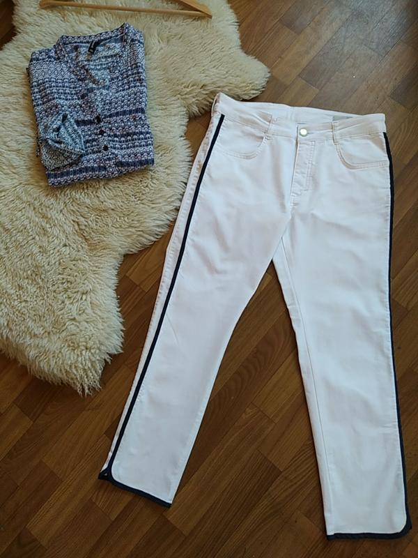 Белые стрейчевые джинсы с синими лампасами . Новые.