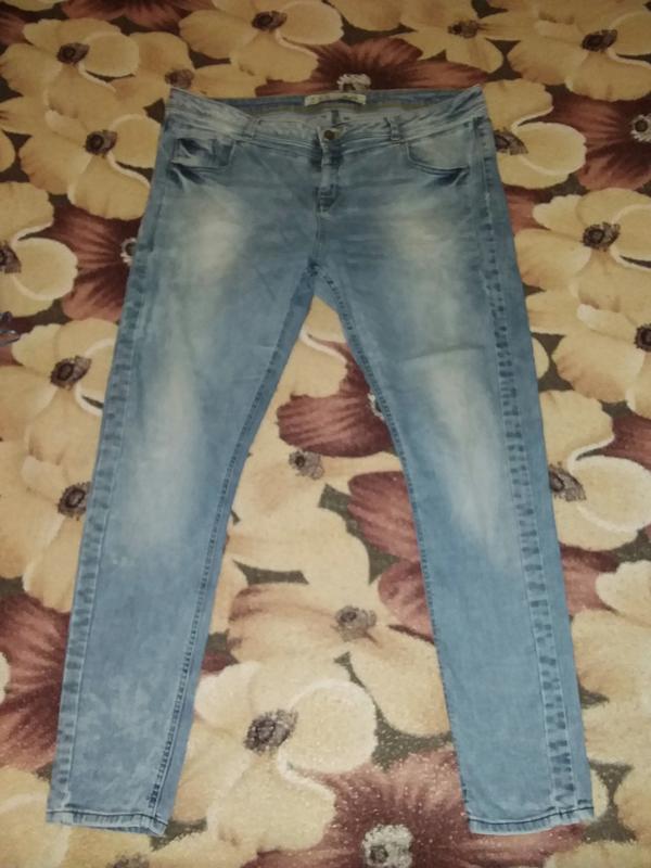 Евро размер 48, смотрите замеры. Состояние очень хорошее, без дефектов. Голубой цвет. Ткань средней плотности, немного тянется. Длина по боковому шву 101. По внутреннему шву 75. П/о в поясе 51 - 53. П/о бедер 61 - 63. П/о штанины в самом верху 31, внизу 15. Высота посадки, от шва - развилки к верхней точке пояса 27. 12.