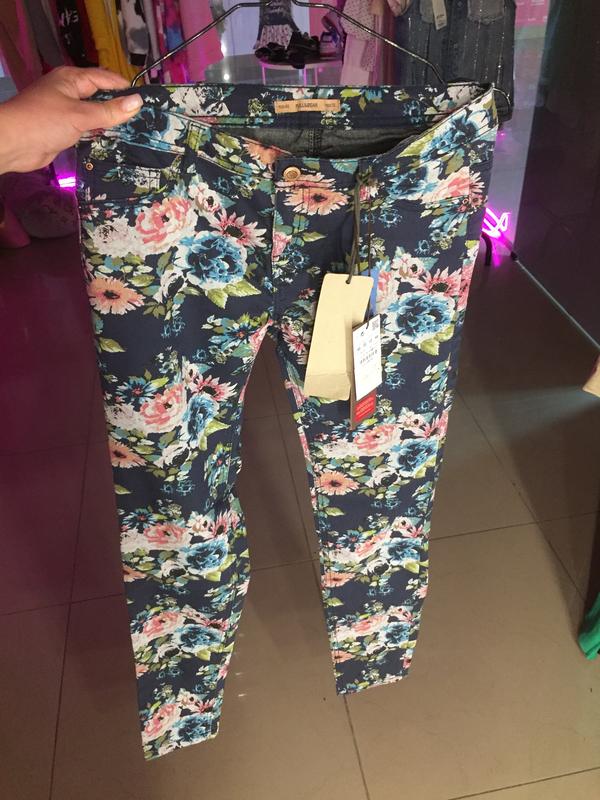 Размер 40 идут на 38 гдето Пот 39 см Посадка спереди 22 см, сзади 34 см Поб 45см примерно( под ширинкой) Длина 100 см Красивый цветочный принт