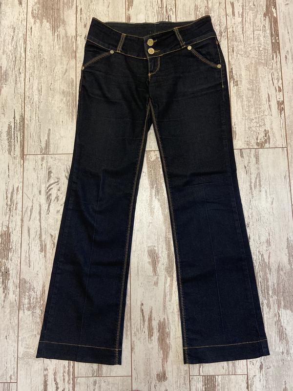 Красивые джинсы клеш, низкая посадка,цвет темно-темно синий, утянутся хорошо, одетые на М, замеры по запросу