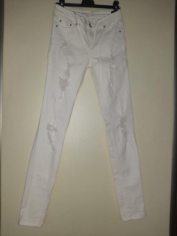 Красивые белые рваные джинсы в очень хорошем состоянии. Размер 34 европейка (S), подходят на наш 38-40-42. Средняя посадка. ПИТ - 35 см, ПОБОДЫ - 44 см, длина по внешнему шву - 97 см, по внутреннему - 75,5 см. Растяжимость есть.