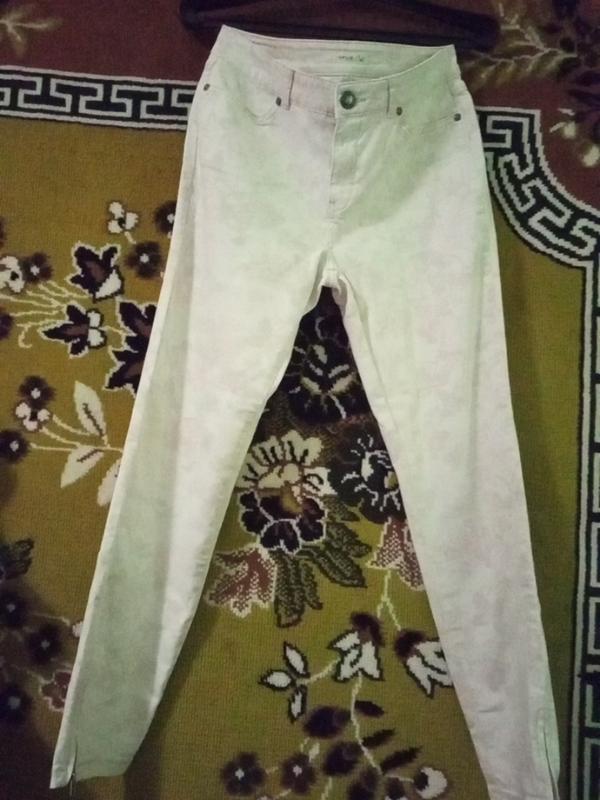 Брюки розміру 36 Брюки,штаны,джинсы светлые в цветы Талия-77-78 см таз-92 см Глубина спереди-22 см,сзади-33,5 см Длина по шаговому шву-69 см,по боковому шву-92 см Ширина в ляшке-53 см,низ-25 см(на змейке)