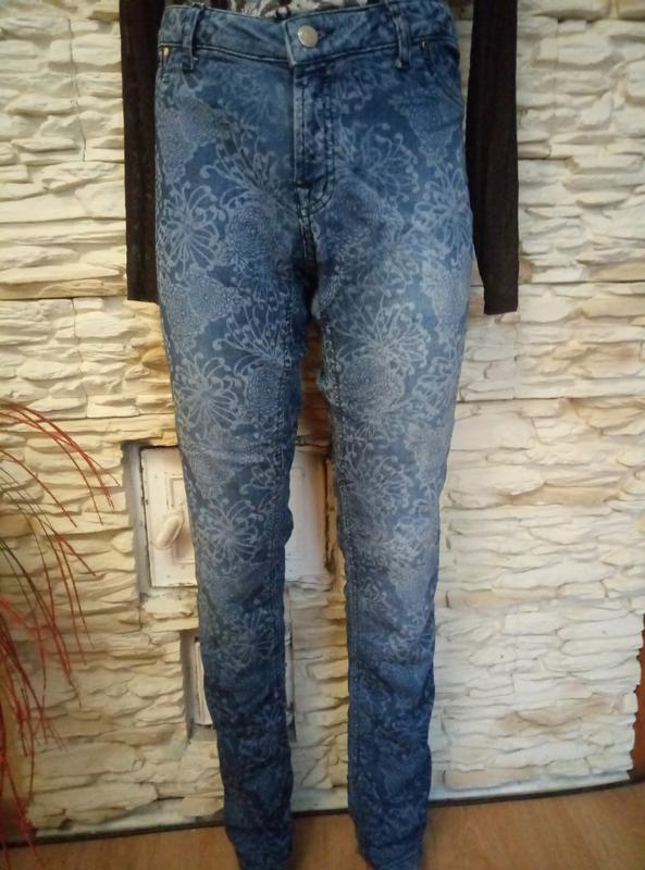 Джинсы с рисунком зауженные к низу ткань тянется отлично садятся на фигуре полуобхват талии 45, бедир56, длина 102