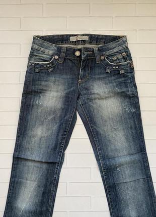 Добротные красивого синего цвета джинсы. Прямой крой. Средняя посадка. Брендовые. С кожаным декором на задних карманах. Размер 26