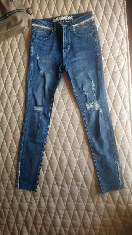 Джинсы синие, декорированы, с потертостями, со средней посадкой, произведены в Италии, отличного качества