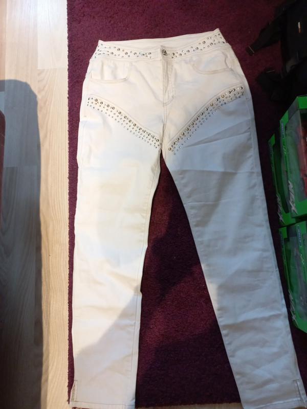 Продаю нові білі гламурні джинси з високою посадкою. Розмір 44-46. Італія 42-44. Талія 38 см, бедра тянуться до 105 см. Камінчики всі на місці. без дефектів., нові з біркою.