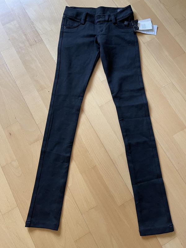 Джинсы плотные на флисе чёрного цвета размера 26, маломерят, реально на 24/25. Пояс 34 см, тянется до 39 см, ПОБ 41 см, ширина внизу 12,5 см. Посадка сзади 25,5 см, впереди 18 см. Эластичные, тянутся.
