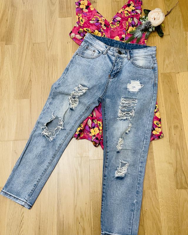Нот-34см,Ноб-46-47см,довж-86см-55см,посадка 28-33см.На останньому фото-частково зашита рвана дирка на коліні.Можна легко розшити,чи залишити так.