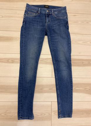 Синие джинсы, в идеальном состоянии. Тянутся. Размер 26. Посадка 20 на 34 см, Пот 36 см, Поб 45 см, Длина 97 см.