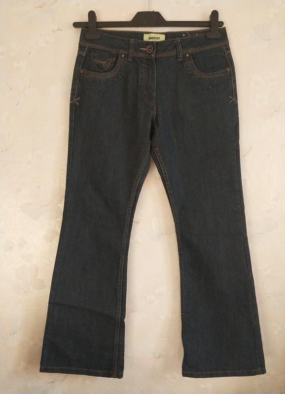 Женские джинсы George S 44р.клеш, хлопок Низ брючин расширенный от колен, цвет темно-синий. Невысокий рост. Посадка средне-низкая. 72% бавовна, 27% полиэстер 1% еластан Полуобхват по талии 37см Длина 96см Шаговый 73см Посадка 24/34см Ширина штанини 24см Пересылаю удобной вам по почте.