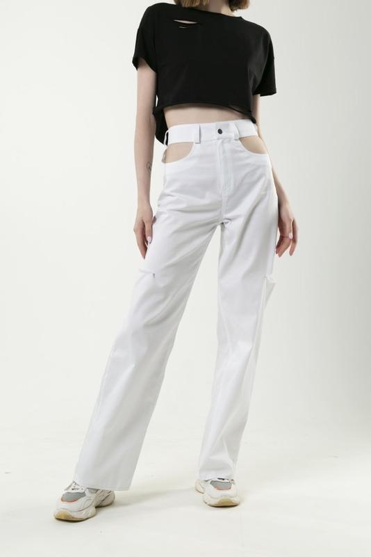 Так же в наличии джинсы чёрного цвета - Посадка высокая; - Крой широкий, свободный; - Застегиваются на кнопку и молнию; - Спереди карманов нет, есть два накладных кармана сзади; - В поясе есть шлевки для ремня; Замеры : Размер S Полуобхват талии : 32 см; Полуобхват бедер : 48 см; Длина по бок. Шву : 112 см; Посадка по зад. Шву : 38 см. Размер М Полуобхват талии : 34 см; Полуобхват бедер : 50 см; Длина по бок. Шву : 114 см; Посадка по зад. Шву : 40 см.