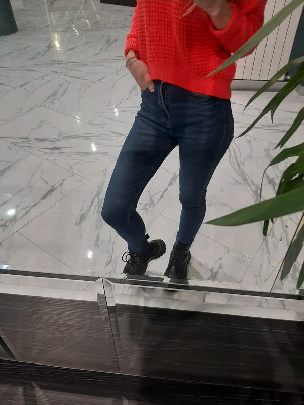 Высокая посадка джинсов, с не обработаным нижним краем, а так же с фабричными потертостями , размер xs, но в идеале будут на размер s.