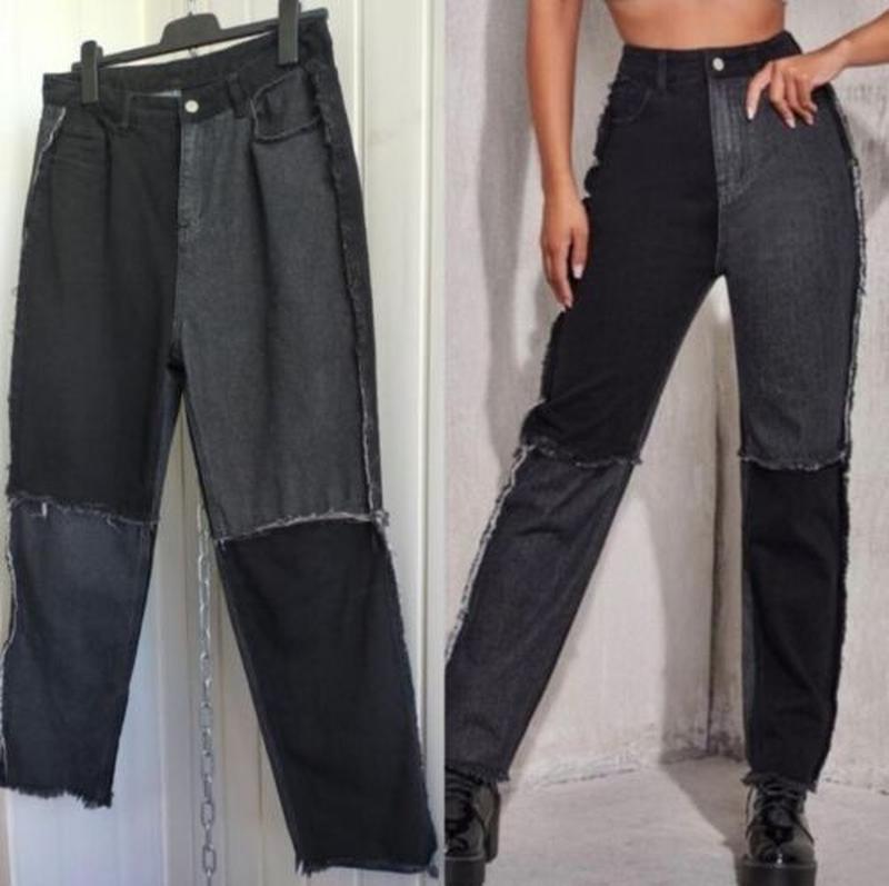Интересны двухцветные джинсы Женские брендовые двухцветные джинсы мом, высокая посадка. пэчворк Джинсы МОМ Two- tone (двухцветные) , в стиле пэч ворк В одном размере в одном цвете - серо-черные, размер 31/ L., но ориентируемся по замерах, замеры: Длина от пояса 100 см + 4 см пояс; шаговая 72 см; Пот 40-41 см; Поб 57-58 см Ширина штанины 30/23/18,5 см Посадка от пояса 30/38 см+ пояс 4 см состав: 85% - коттон, 15% - полиэстер состояние новых первое фото- как выглядят подобные смотрим весь мой профиль
