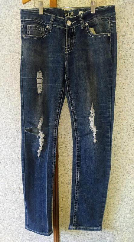 Рваные стрейч-джинсы Длина: 100 см. ПОТ: 40 см. ПОБ: 60 см. Состав: 56% Ramie 42% Cotton 2% Spandex