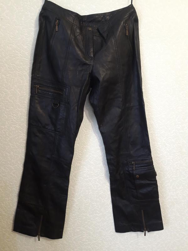 Штани з натуральної шкіри. Якість - супер. Кармані бокові, на штанинах на блискавках. Внизу на штанинах теж блискавка. ПОБІДИ 51 ПІТ 40 Довжина по боковому шву 98