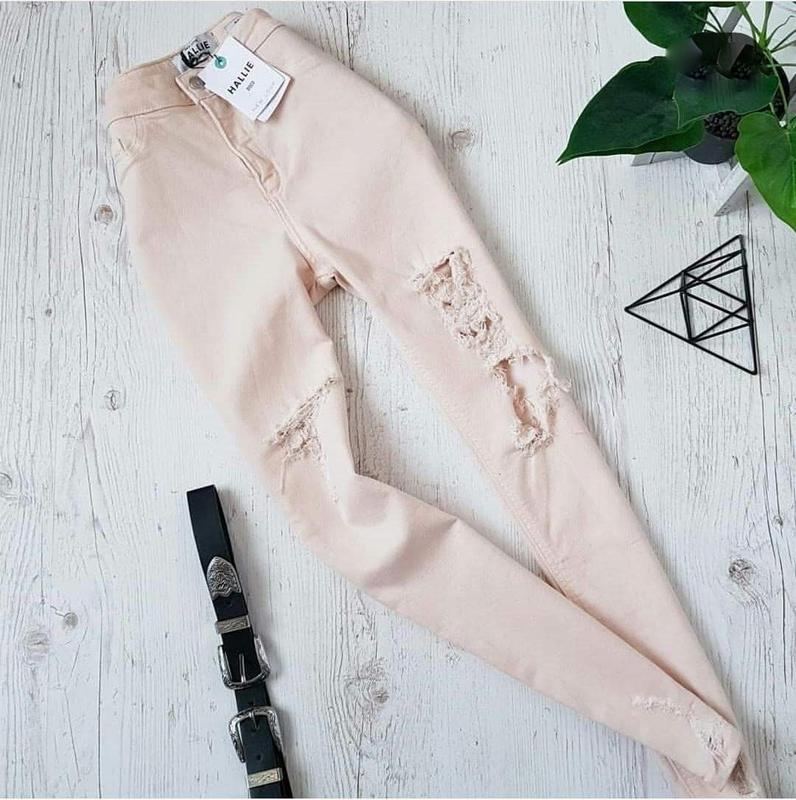 Прекрасні джинси з високою посадкою, ніжно рожевого кольору, з розрізами спереду, джинс плотний, європейський 38 розмір