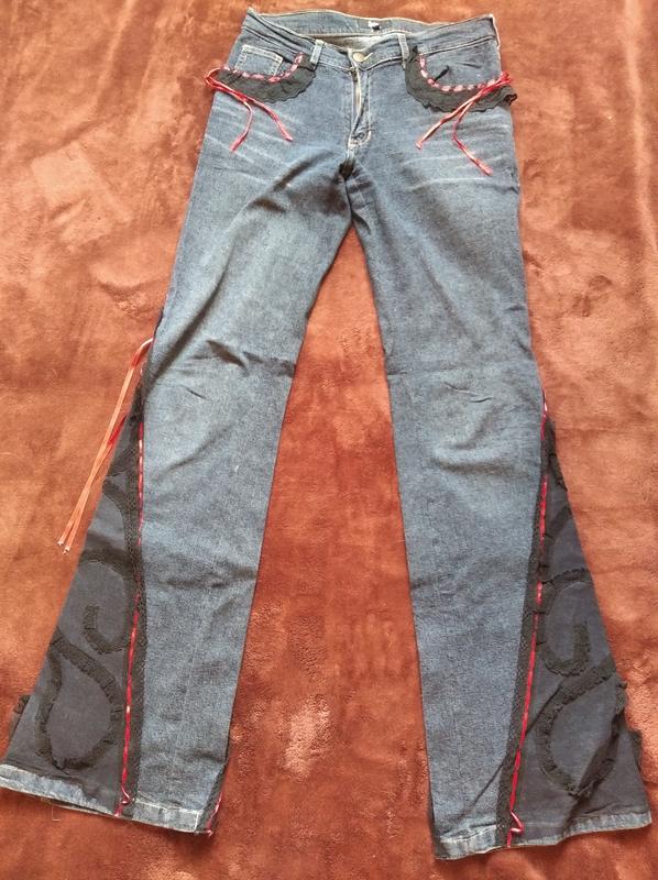 Джинсы Seven Paris С тканевыми вставками, ленточками, рюшами Размер M В поясе 74 см В бедрах 88 см Длина 107 см Ткань тянется Внизу расширяются В идеальном состоянии По всем дополнительным вопросам обращайтесь в любое удобное для Вас время