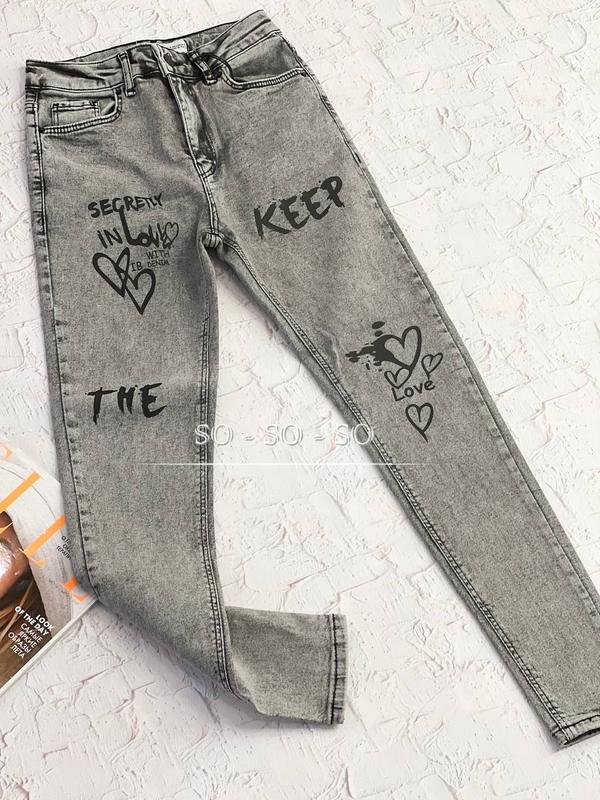 Джинсы «скинни» Производство Турция Размер: 26, 27, 29, 30,31 Ткань: джинс + принт (джинс тянется) Цвет: серый