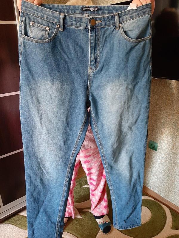 суперові плотні джинси,в реалі краще,чим на фото,р пише 16,котон+поліестр,слідів носки немає,талія 47/50,бедра 60,не тянуться,до низу чуток завужені 17 см. посадка висока32/41,довжина 105,шаг 73,