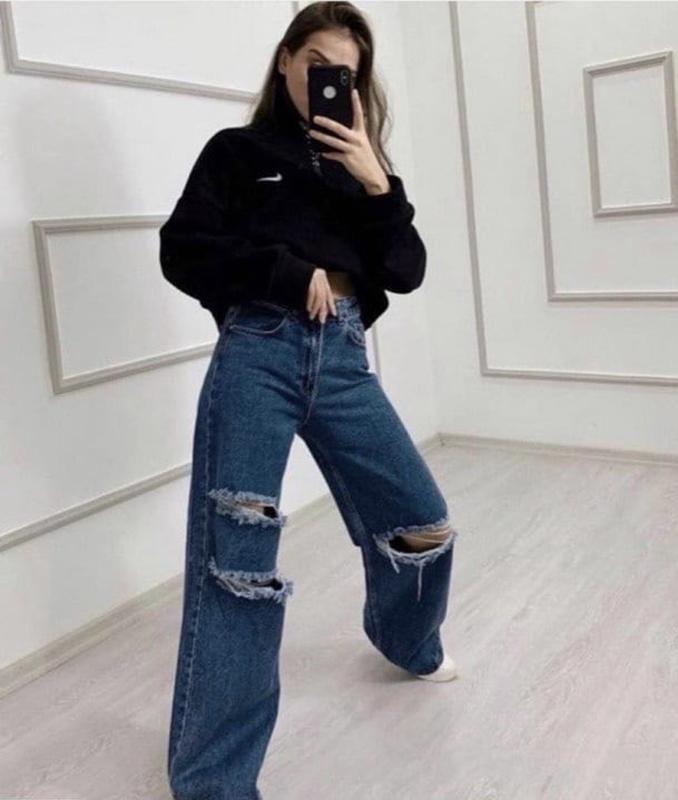 Сині джинси з розрізами Колір такий, як на першому фото Більше фото у приват Підійдуть на розмір М
